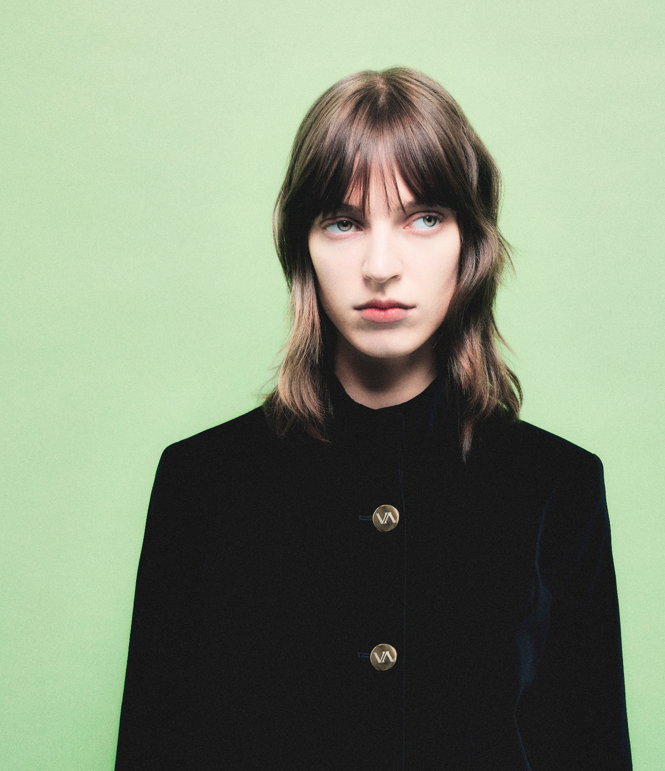 Single-breasted two-button closure, three buttons at the cuffs and large peak lapels. Dropped and unstructured shoulders. Two front pockets with flaps. Double vent with flap on the back. Semi-lined and internal pocket with one button.