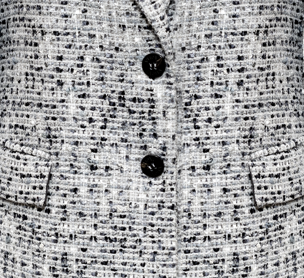 Single-breasted two-button closure, three buttons at the cuffs and large peak lapels. Dropped and unstructured shoulders. Two front pockets with flaps. Double vent with flap on the back. Semi-lined and internal pocket with one button.
